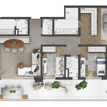 Apartamentos que une conforto, estilo e eficiência. Oferecemos unidades bem planejadas com varandas, iluminação natural e plantas inteligentes. Projetamos áreas comuns completas — academia, piscina, salão gourmet, coworking e pet place — e lidamos com gestão profissional, segurança 24h e manutenção preventiva. Nosso objetivo é simplificar sua rotina e valorizar seu tempo.